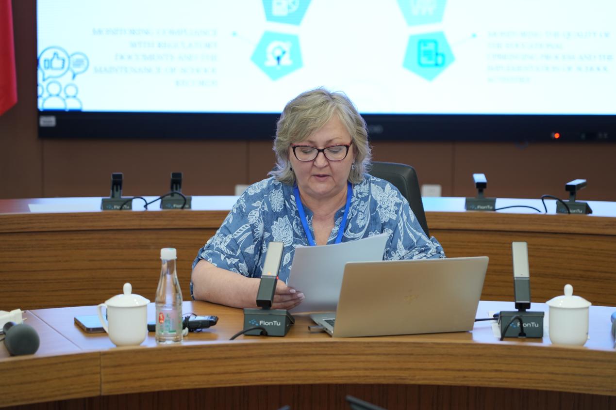 哈萨克斯坦共和国教育部阿拜区教育质量保障局局长Bakytgul Massalimova分享了他们将国家教育质量控制机制作为核心工具,定期对教学工作进行检测的实践经验。她认为重点在于通过评估(如预防性监控、机构认证、教师认证)识别教育机构和教师的需求与短板,为教师创造支持性环境,推动其专业成长和持续资格提升。