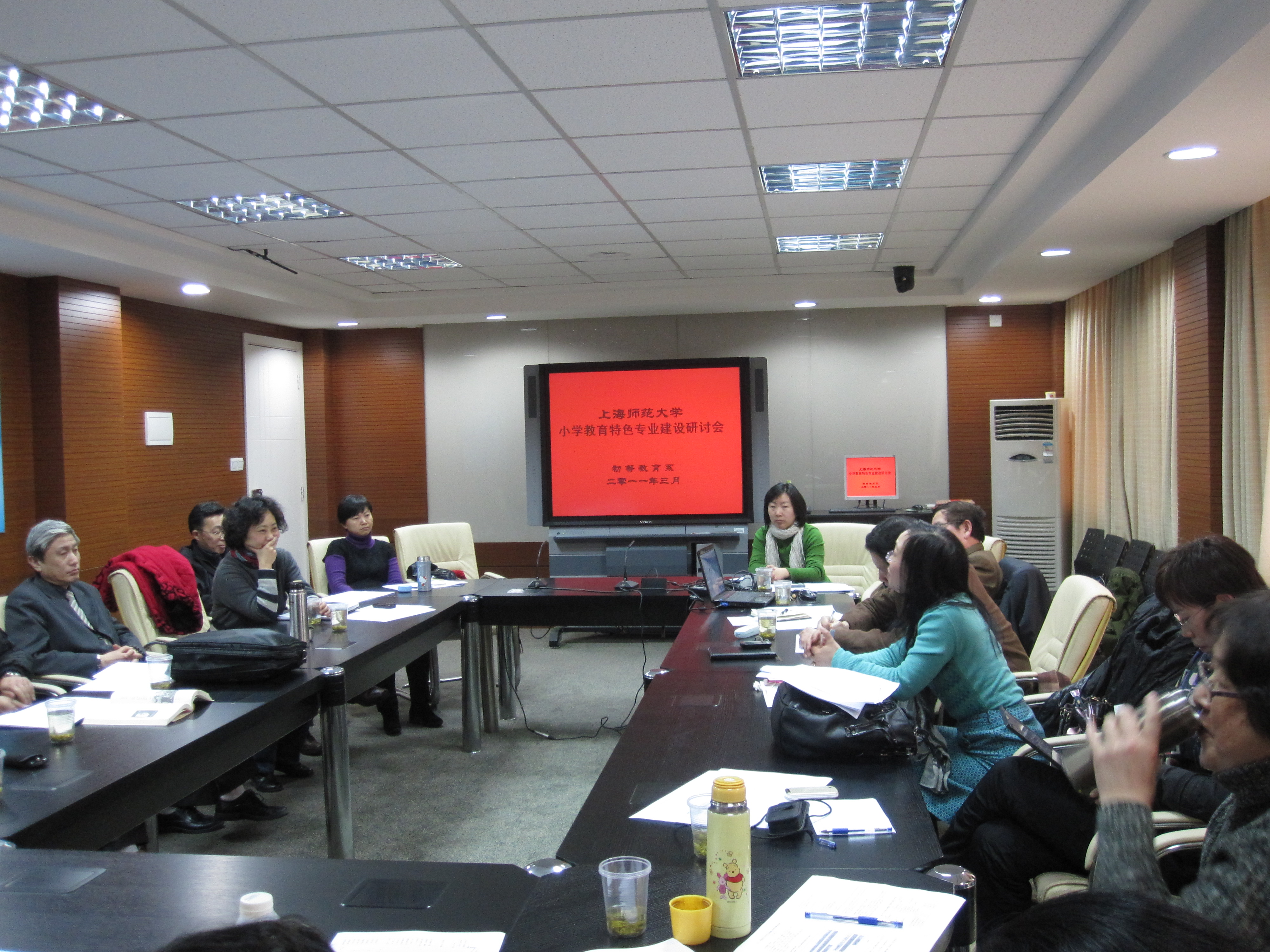 2011年3月2日下午,初教系小学教育特色专业研讨会在四教407举行。院领导惠中、高湘萍、谢青老师参加了本次研讨会。整个研讨会围绕如何进一步开展初等教育学背景下的课程建设、如何以活动的形式展示总结专业建设的成果、如何建设更多有特色的精品课程、如何培养小学教育专业学生实践能力、如何进一步加强团队建设等方面展开了充分的讨论。惠中老师向大家介绍了教师标准制定的详细情况,希望初教系能够在专业建设上抢占制高点;系主任吴忠豪老师就初教系如何做特、做强发表了具体设想,支部书记丁炜就学生实践能力的培养提出了整体性的思考方案,得到了老师们的响应和补充;各教研室主任就学科建设和能力培养提出了许多建设性的意见;夜大学专业负责人钟文芳就职前职后一体化、学生教育教学素养如何落实到课程发表了看法。