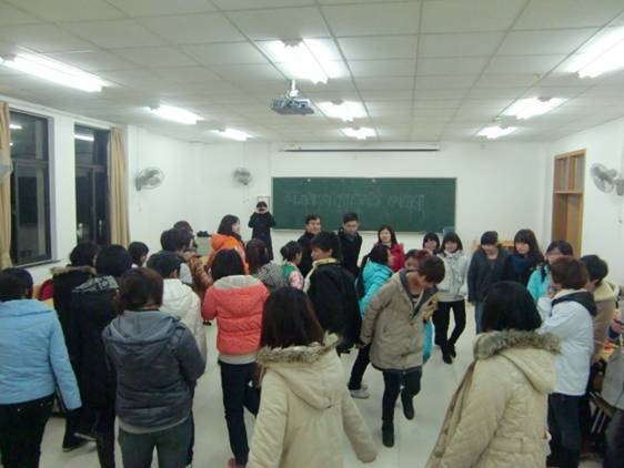 游戏方停,参与者们依旧热情高涨。于是,趁着大家热情澎湃,几位藏族学生带头跳起了他们家乡的藏舞。和着藏族音乐,他们的舞蹈太有感染力了,许多观看的汉族学生都情不自禁地跟着他们跳了起来。旋转、跳跃、甩手,不自觉地,大家都模仿着藏族学生们,绕圈,舞蹈,转圆。一切都那么自然,大家都沉浸在喜悦中,久久不能自拔。