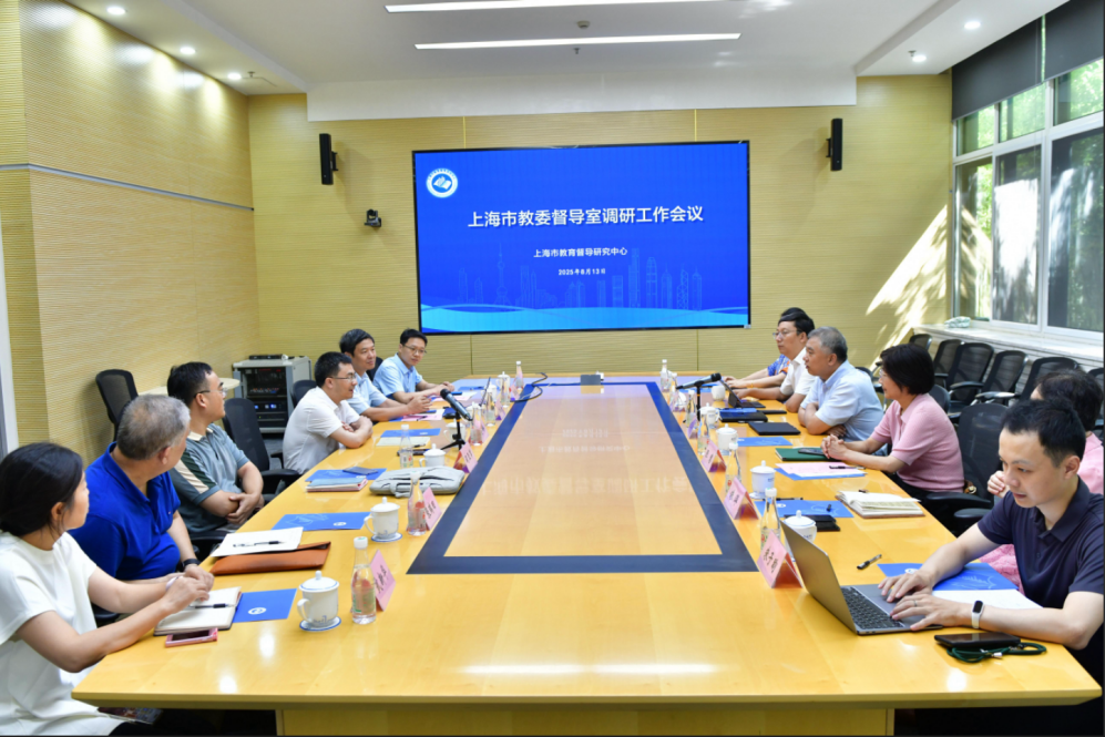 8月13日,上海市教委副主任、总督学刘玉祥带队,市教委副总督学张慧,市教委督导室主任焦小峰,副主任朱萍、赵丽霞一行莅临我校,对上海市教育督导研究中心开展调研。副校长李晔,教育学院院长黄海涛、副院长张继龙及相关教师代表参加调研,调研由教育学院副院长阎亚军主持。