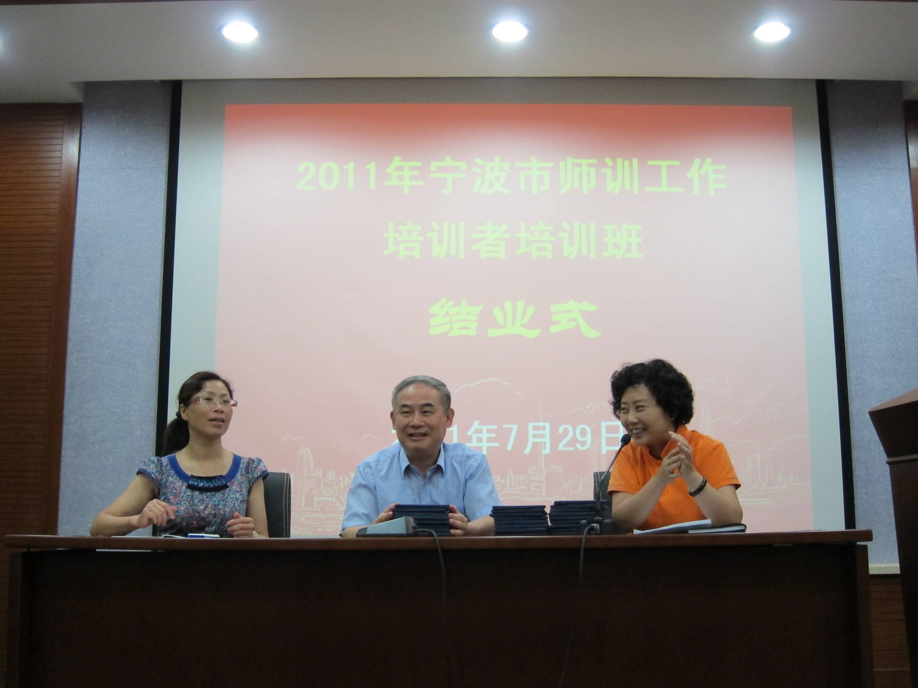 2011年7月29日下午,宁波市师训工作培训者培训班结业仪式于四教B101举行,教育学院院长陈永明、宁波市中小学教师培训中心常务副主任陈全英等领导出席。结业仪式由教育学院高湘萍副院长主持。