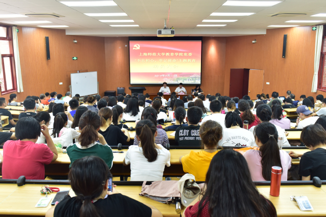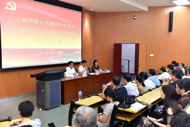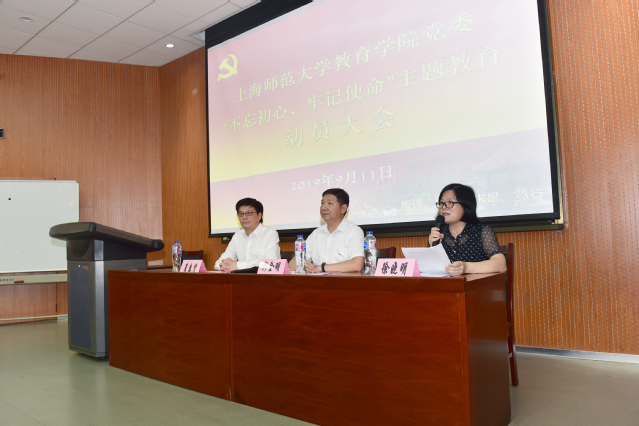 9月11日中午,教育学院党委“不忘初心、牢记使命”主题教育动员大会在徐汇校区东一教室顺利召开。教育学院党委书记徐晓明同志作动员讲话。校“不忘初心 牢记使命”主题教育第一指导组组长、校纪委副书记、纪委办主任、监察处处长(兼)韩金明作指导讲话。会议由教育学院党委副书记(兼)、院长夏惠贤主持。学院班子成员、学院党委委员、党支部书记、全体党员、党外人士代表、学生代表等参加会议。