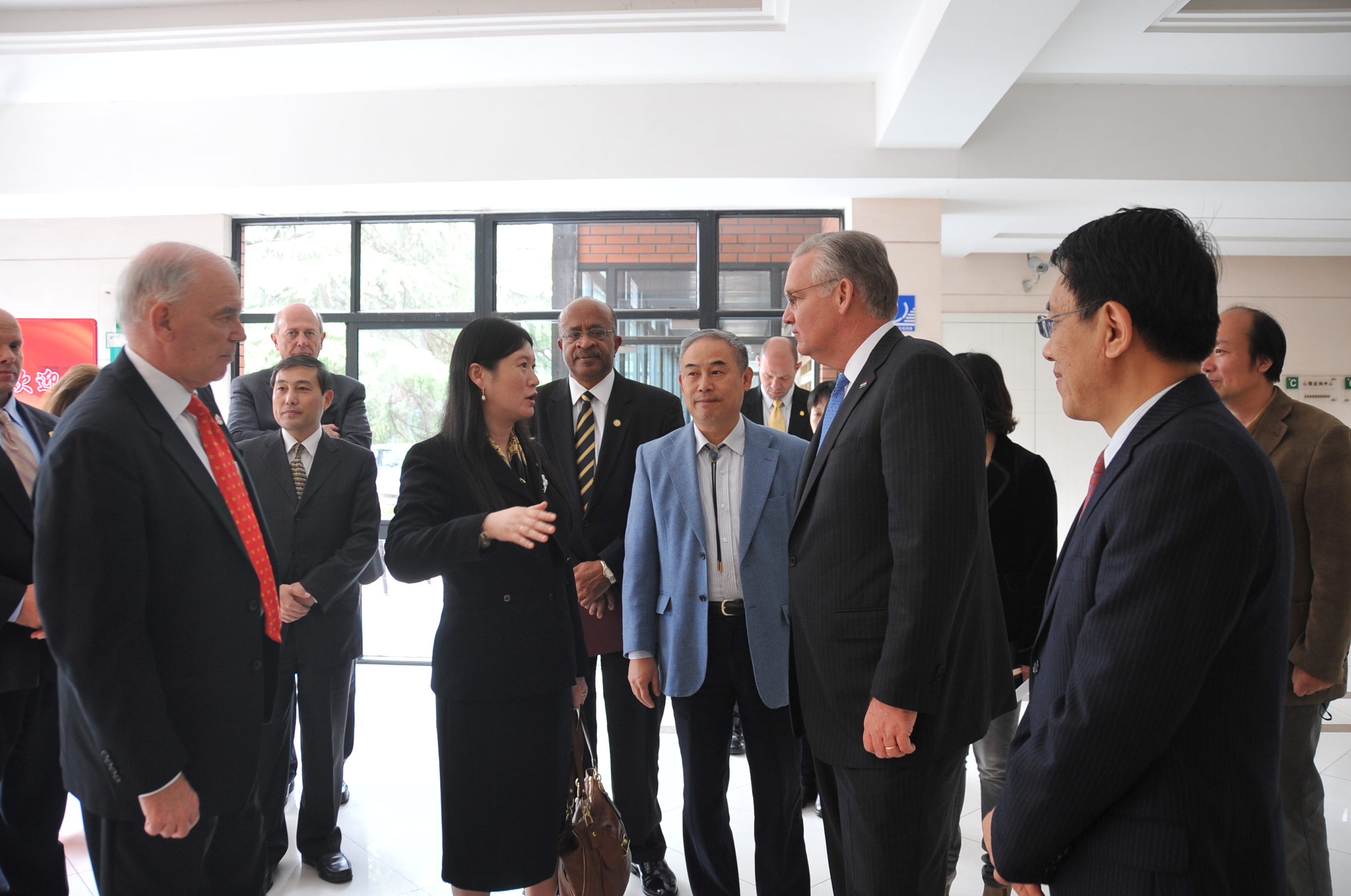 10月28日,美国密苏里州州长杰里迈亚•尼克松、密苏里大学副校长汉迪.威廉姆逊教授、副校长办公室国际项目交流专员欧阳文一行参观了四教教师教育基地。陈永明院长向来访客人介绍了远程教育设备,以及学院利用微格教学技术所开展的各项教师教育活动。