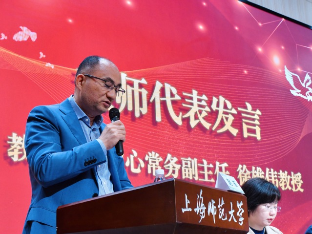 院教师发展中心常务副主任徐雄伟教授作为教师代表,围绕“善良、格局、担当”三个关键词,启迪同学们用善良的心滋养教育情怀,用豁达的格局拥抱学习生活,勇于担当、终身学习,努力成长为卓越的教育工作者。2022级学生代表赵悦皎分享了她的支教事迹,并结合研究生的具体内涵抒发了对研究生生活的期待与憧憬,希望与同学们共同肩负起时代赋予的使命任务。