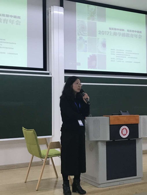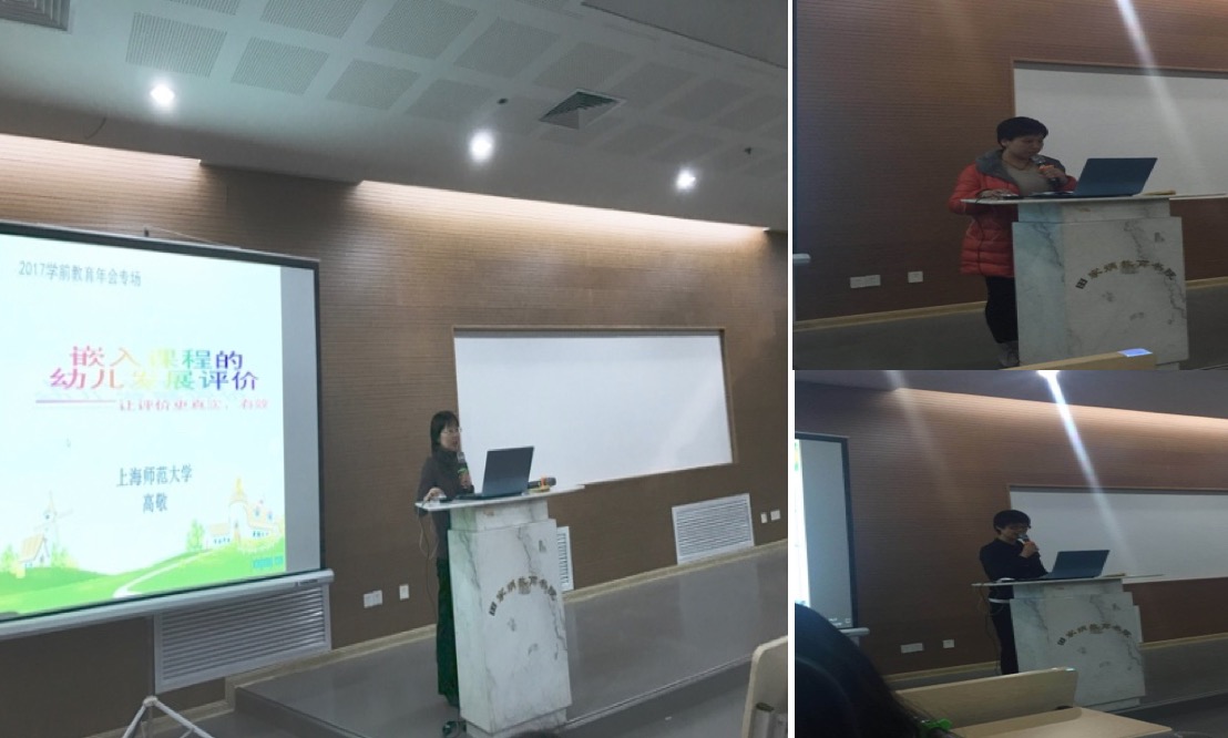 高敬老师主持了“嵌入课程的幼儿发展评价”的专题研讨。高敬老师近年来结合上海幼儿园教师幼儿发展评价的困境和难点开展了市级重点课题——嵌入课程的幼儿发展评价研究,在幼儿发展评价领域的理论和实践积累颇丰,在幼教领域有较大的影响力。这次专题研讨会场气氛热烈、座无虚席来自上师大毕业的冰厂田幼儿园丁雨凡老师、康城幼儿园的张凌老师、七宝中心幼儿园的陈茜老师,以及来自思南、奥林、安庆等共8位老师,分别做了幼儿持续发展评估的实践。最后,高敬老师总体介绍了嵌入课程的幼儿发展评价的特点及操作要求,希望与会者能够尝试借鉴运用,让幼儿发展评价工作更真实和有效。