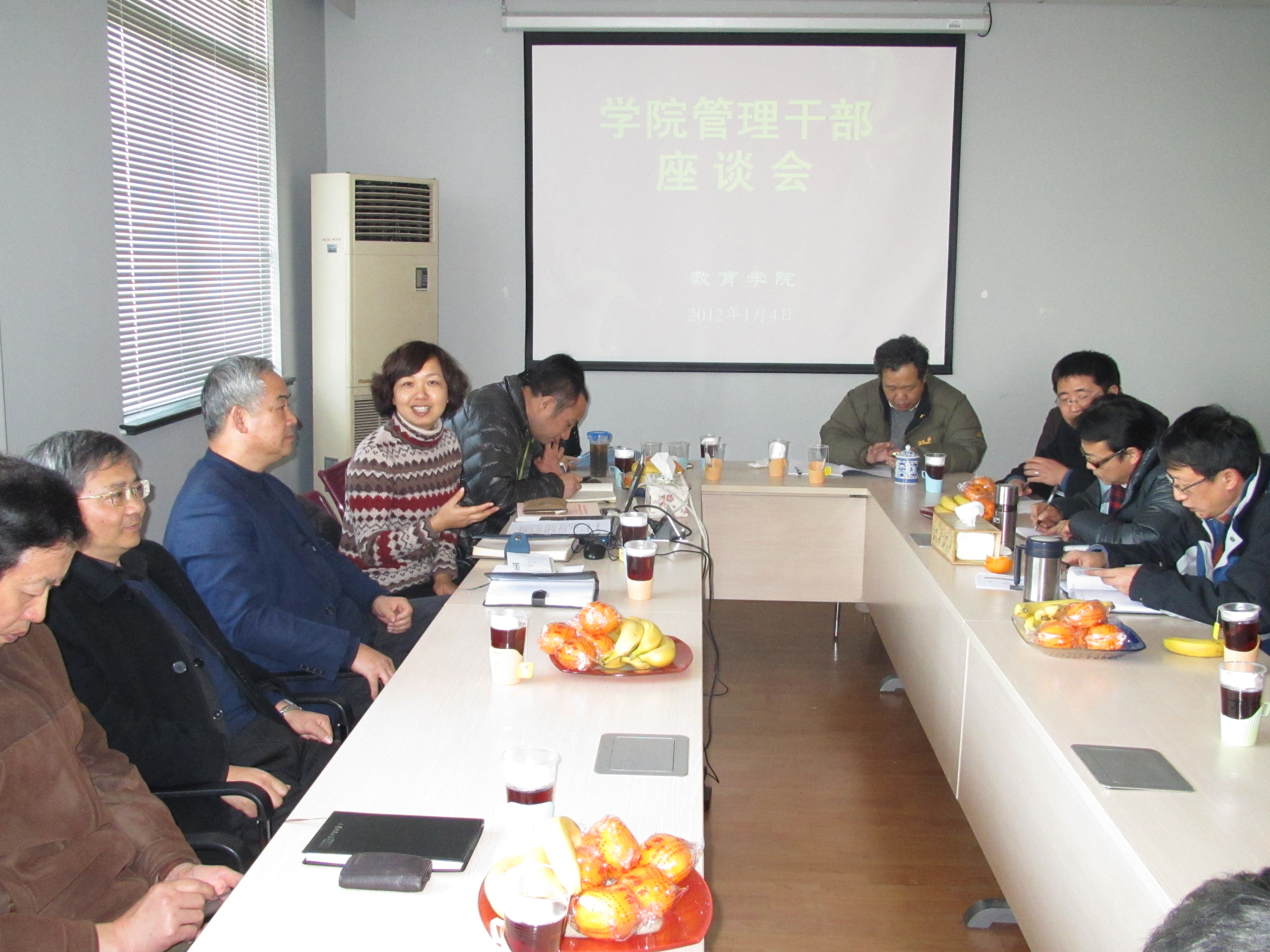 2012年1月4日下午,学院召开管理干部座谈会,各系、中心主任、研究所所长、行政各部门负责人,教工支部书记及全日制和夜大专业负责人出席会议。会议由学院党委书记周银娥主持。