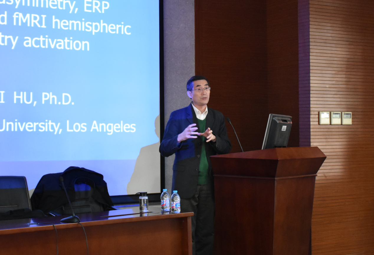 2017年12月18日,美国加州州立大学洛杉矶分校心理系主任、教授胡森岐应伟德国际BETVlCTOR心理学系邀请,在第四教学楼101室为教育学院广大师生做了题为“Viewing affective pictures induces facial EMG asymmetry, ERP asymmetry, and fMRI hemispheric asymmetry activation”的讲座,心理学系罗俊龙副教授主持了该讲座。