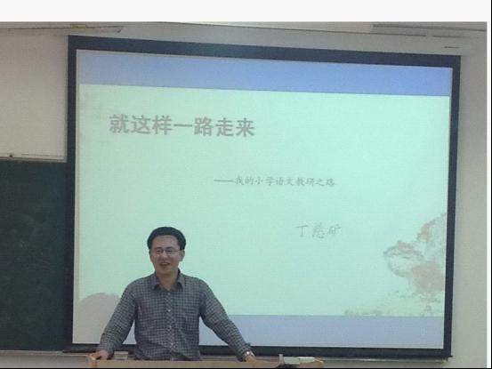 丁慈矿从事小学语文教学已有十四个年头。在讲座中,他用自己的教学实践畅谈如何认识自身的“长”与“短”,并从中寻找自己专业的生长点。当谈到什么样的语文教学才是成功的?丁老师的体会是“情趣教学”。他认为语文教学要使学生从骨子里热爱汉语,学会生活,学会感动。在教学的探索中,他指出要敢于探索自己的路,只要觉得自己这样做是对的,就应坚持住,不要太在意外界说什么。丁老师特意告诫,在小学教学中要关注“最好玩”。所谓“最好玩”,不仅指将最有价值的知识讲给学生听,还指利用自己的专业技能,帮学生们从较为乏味的课文中找到精彩之处。