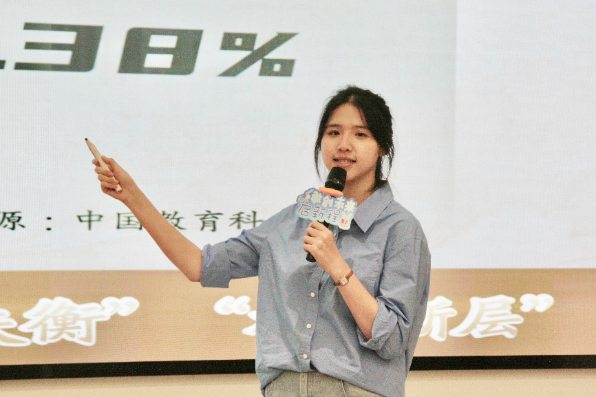 第十八届“挑战杯”全国大学生课外学术科技作品竞赛国赛二等奖获得者严文奕作为优秀学生代表发言。她动情阐述自己初入科创赛道的迷茫与后期的飞速成长,让原本对科创备赛感到困惑的学弟学妹们豁然开朗,那些生动的备赛场景和解决问题的思路,成了他们未来参赛的“实战指南”。
