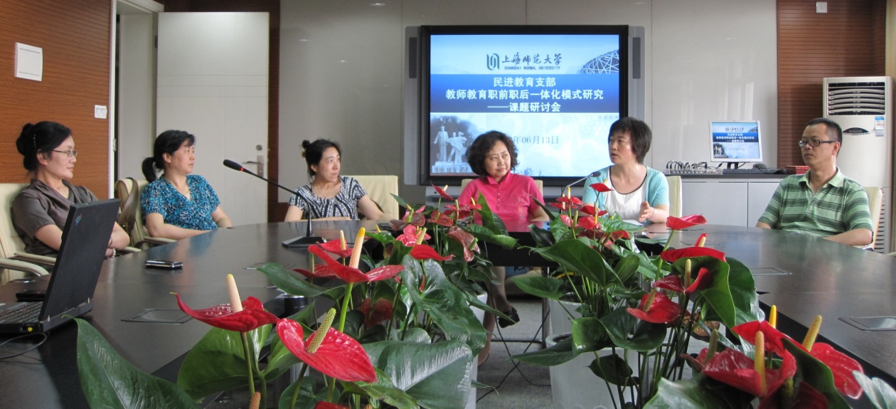 2012年6月13日,民进上师大委员会教育支部召开了“党委出题•党派调研”——《上海师范大学职前培养职后培训一体化模式的研究》课题研讨会。民进上师大委员会主委高湘萍教授、副主委李丹教授以支部会员的身份出席了本次研讨,出席研讨的还有李燕、张晓春、沈荣伟、叶勤、李嘉玮等支部会员。