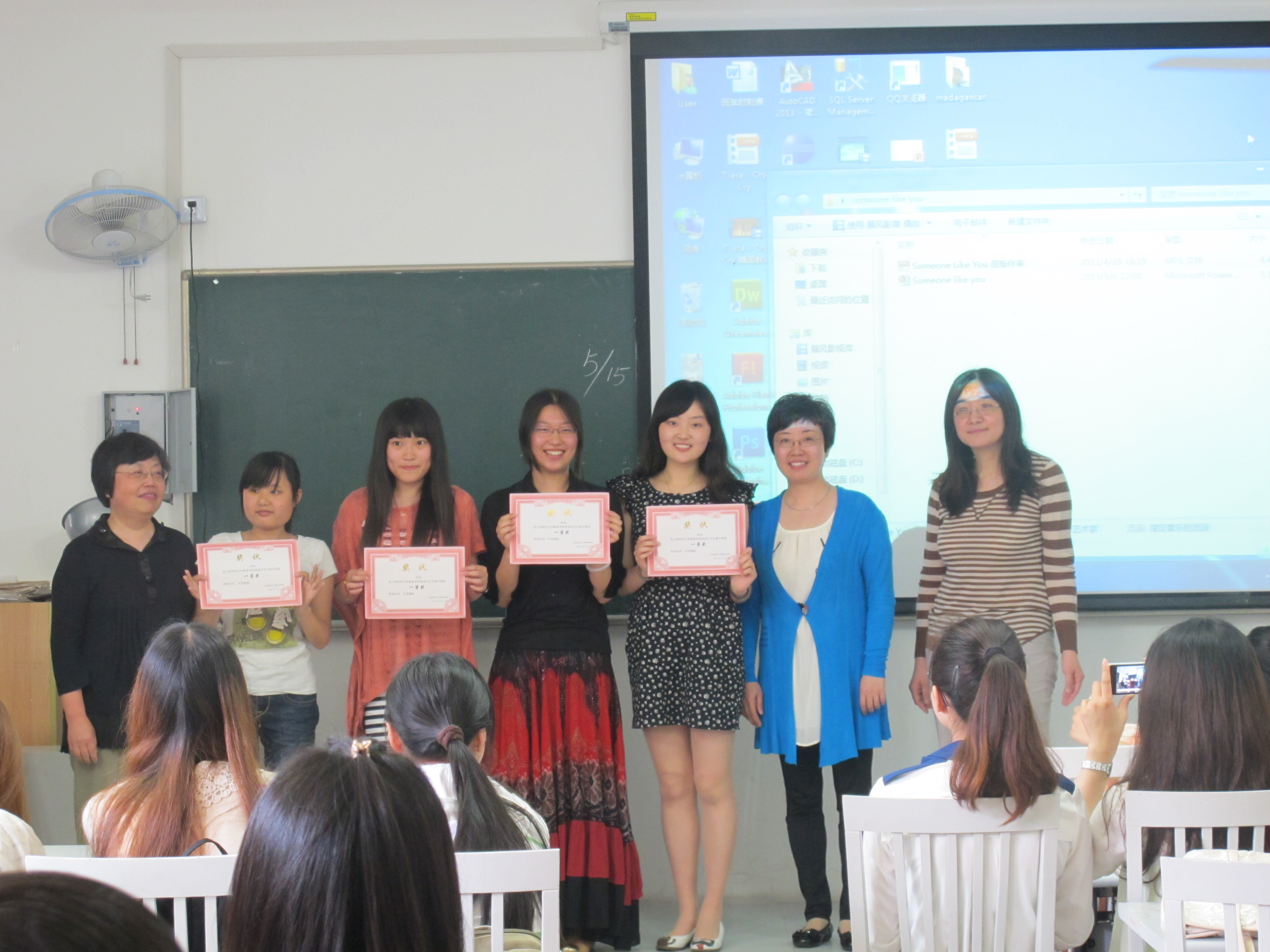 初夏莺语之时,活力英语之日。2013年5月14日上午,在上海师范大学奉贤校区第五教学楼A座207室内,一场属于教育学院2011级小学教育专业全体同学的英语才艺大赛正式拉开序幕,历时三小时的比赛中,时而欢声笑语,时而掌声雷动,全体同学沉浸在多种形式的英语表演中,尽情享受着英语演出所带来的视觉,听觉的冲击,真可谓是一场期待已久的“English party”。本次大赛是由英语教师王融老师、董玲老师以及徐梅老师共同组织筹办,并亲自担任了本次大赛的评委。每个班级都将派选出三个准备充分的节目进行终极比拼。