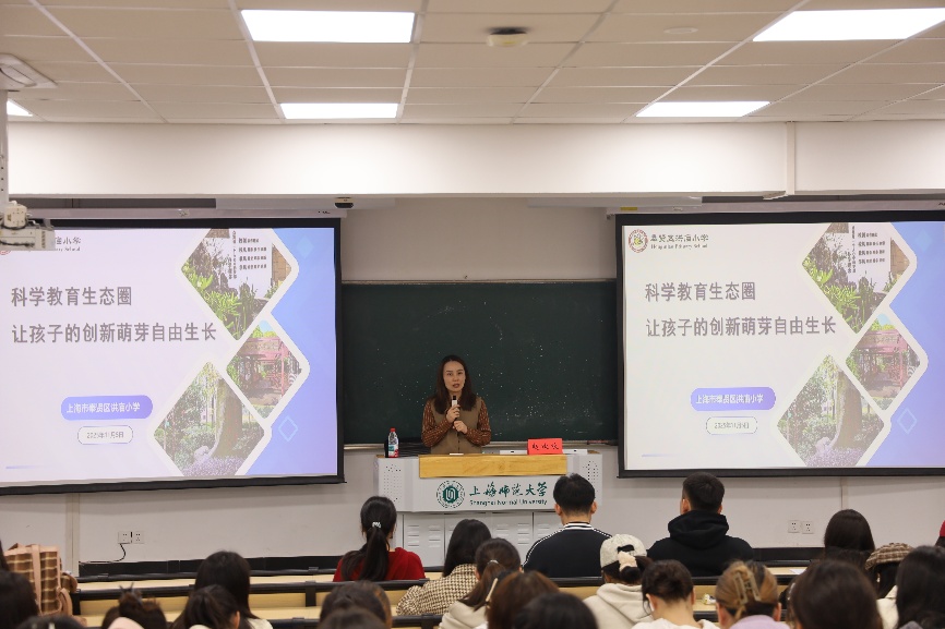 为进一步强化师范生科创意识,聚焦教育与科创深度融合,探索育人实践新范式,11月5日下午,学院邀请上海市奉贤区洪庙小学党支部书记、校长赵欢欢于做客“人生导师”沙龙,以《科学教育生态圈:让孩子的创新萌芽自由生长》为主题,分享科学教育实践与探索的经验。活动由院团委副书记、辅导员刘怡轩主持,教育学院百余名本科生参与活动。