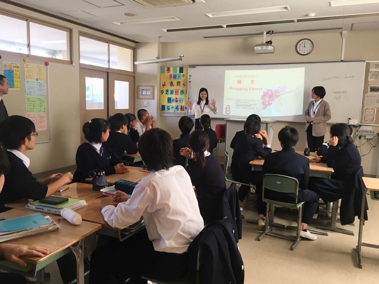 我校师生在胡国勇老师等三位教授的带领下参加了京都教育大学的欢迎会,并与该校师生一起交流中日教育、生活、学习等方面内容,感受中日教育文化的差异。京都教育大学的师生们热情洋溢,现场气氛融洽。随后几天,参观了京都教育大学附属桃山中学的文化祭活动,欣赏了该校学生们的才艺展示和学习成果;观摩了京都教育大学附属桃山中小学的课堂,了解了教师用平板电脑授课来提升学生ICT能力的教学特色。