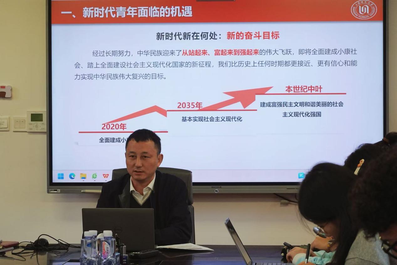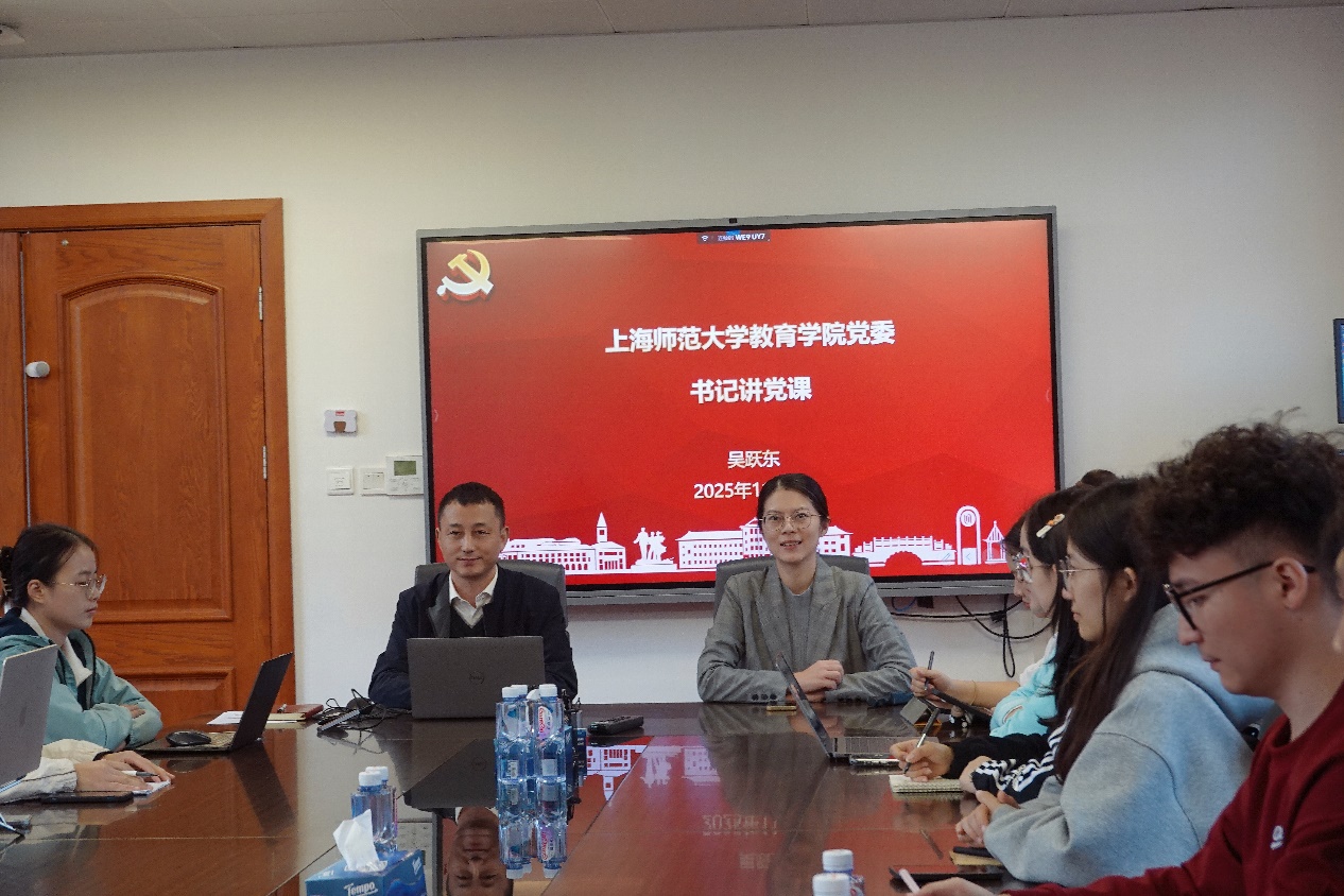 11月3日下午,在54号楼201会议室,教育学院党委副书记(主持工作)吴跃东以“新时代青年的责任与担当”为题,为学院研究生骨干讲授专题党课。党课紧扣时代脉搏,结合国家发展成就与青年成长实际,引导学院研究生在新时代征程中明确使命、勇毅前行。讲座由教育学院学生工作负责人潘梦琳主持。