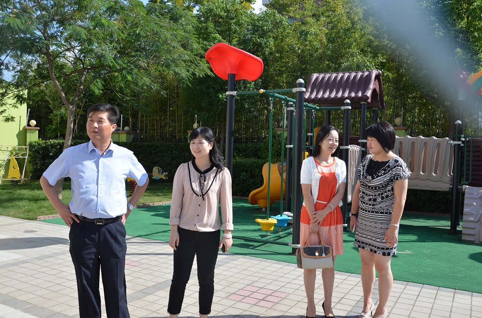 2013年9月17日上午,闵行区教育局副局长施云飞、学前教育科科长黄悦来到上海师范大学闵行实验幼儿园视察工作。领导们首先察看了幼儿园的园所环境,并走进活动室了解孩子们的一日生活情况。幼儿园整洁、美观、富于童趣的环境,天真可爱的孩子和认真敬业的教师们给领导留下了深刻的印象。