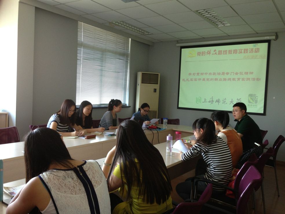 2013年10月12日下午,教育学院召开关于深入开展党的群众路线教育实践活动会议,根据《上海师范大学深入开展党的群众路线教育实践活动实施方案》的有关精神和工作安排,对落实全院研究生党员积极参加此次活动,进行全面部署。院党委副书记谢青,院辅导员,院组织部成员和各班党支部书记等20余人参加会议。