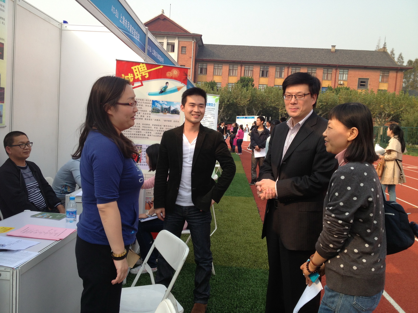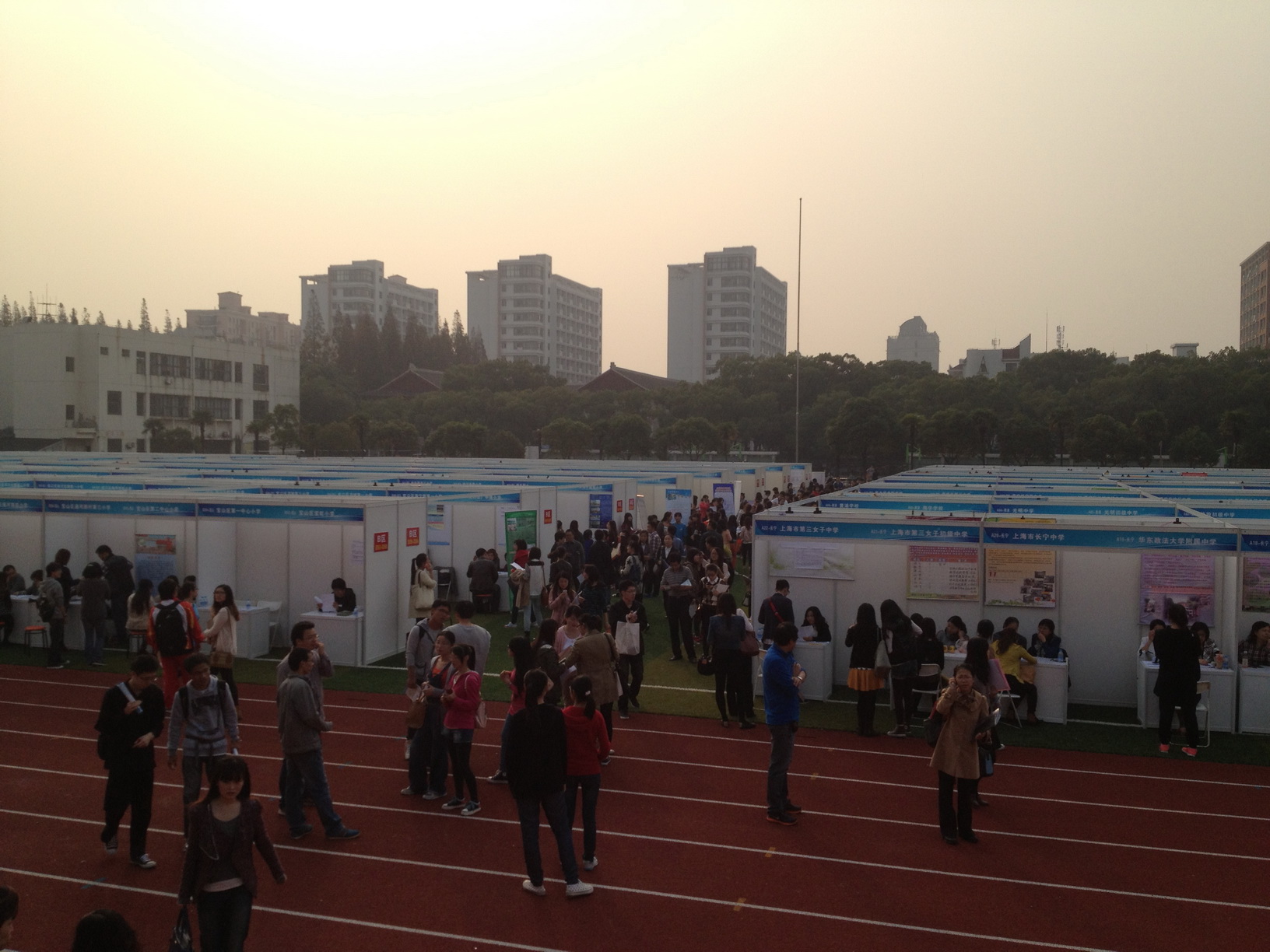 我校于11月6日下午在徐汇校区西部大操场举行了2014届毕业生大型师资转成校园招聘会,其中我院主要承办了小学专场的就业招聘工作,来自全市各区的共256家小学前来招聘。今年,参与招聘的单位数量较往年有显著提升,我院2014届本科毕业生和研究生毕业生前来应聘。