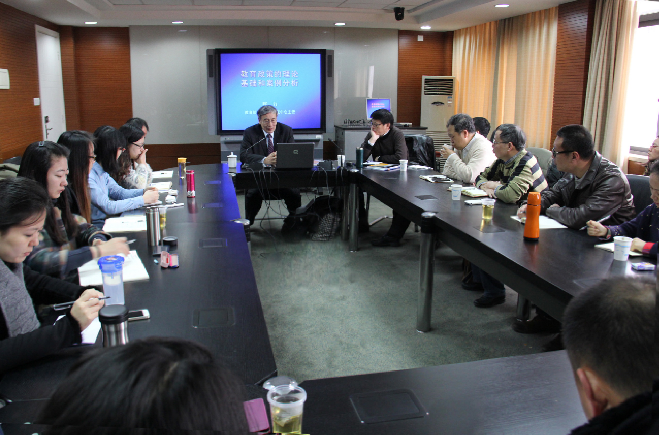 2013年12月15日,教育部教育发展研究中心主任张力研究员来我校做报告,报告的主题是:“教育政策的理论基础和案例分析”。教育学院夏惠贤院长和胡国勇副院长主持了张力主任的报告,教育学院部分教师和比较教育学与高等教育学专业研究生聆听了报告。