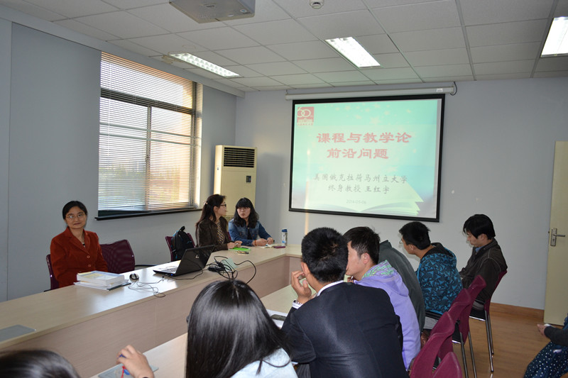 5月6日晚,系列讲座开讲。王红宇教授为我院的硕士生、博士生做了有关“Curriculum Studies Topics”的讲座。王红宇教授讲述了课程论的历史地位和发展轨迹,介绍了课程论在美国作为一门学科的兴起和发展历史以及课程论在美国再概念化的过程,如,Elaine Riley-Taylor的生态空间(Ecological space)概念,Robert Helfenbein的重要地理位置和课程空间(Critical geography and curriculum space)视角,以及创造性课程(Co-creative Curriculum)的内涵与实施等。同时,她还阐述了美国课程研究的前景,如中间地带模式(In-Between space)、交叉结合模式(Intersection)以及并列模式(Juxtaposition)等。这一系列讲座极大地促进了研究生对课程论在美国的演进与创新思路的把握,拓展了学习的思路,提升了研究的视野。