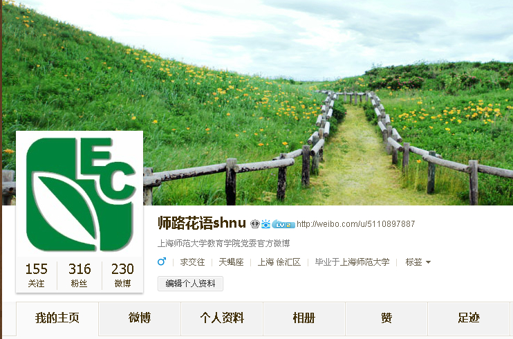我院党建微博@师路花语shnu(暂定)4月23日正式上线两周来,粉丝数、转发、点赞、浏览量不断上升,人气火热集聚中,并已经成功与全国基层党建新闻网以及各兄弟师大的教育科学学院等官微建立起了互粉关系。党委官方微博不仅鲜活地展示学院党委与时俱进、善于创新的新形象,也有利于及时向全院师生传递来自党组织、源自身边人的正能量,从而提升学院整体凝聚力,促进学院各项事业更快、更好地发展。