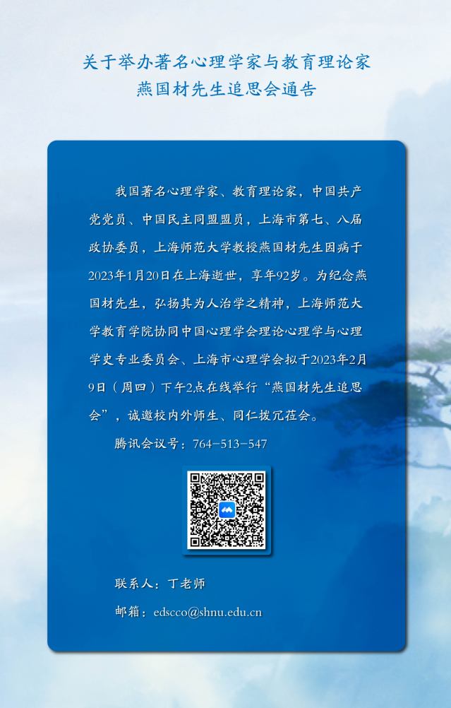关于举办著名心理学家与教育理论家燕国材先生追思会通告