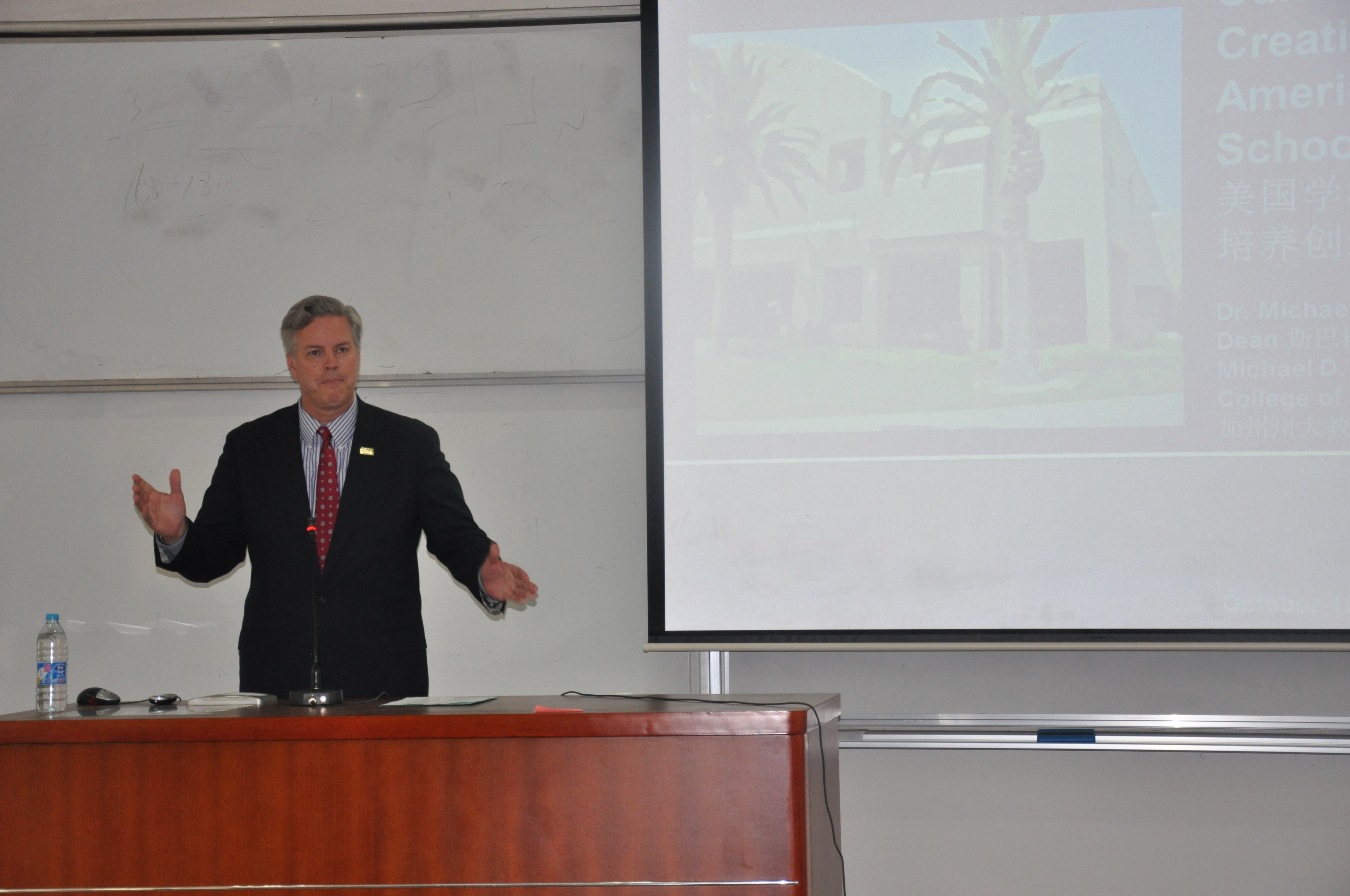 10月16日下午,教育学院60周年校庆系列讲座之“14学思湖海外名师讲坛”在四教201举行,美国加州州立大学北岭分校伟德国际BETVlCTOR院长麦克·斯巴格纳(Michael Spagna)教授和该校中国所所长苏智欣(Justine Su)教授应邀分别为我院研究生开讲。