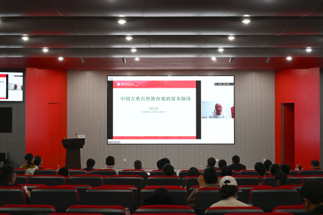 青年论坛结束后,华东师范大学刘梁剑教授、华东师范大学刘良华教授、华东师范大学彭正梅教授带来3场专家报告,《湖南师范大学教育科学学报》编辑部万永奇教授主持。刘梁剑教授以“作为一种学习方式的魏晋清谈”为题,为魏晋清谈做出界定,指出清谈需以三玄、《论语》等经典知识为基础,通过主客对话的礼仪化形式展开,既体现对宇宙悲情与人类有限性的体悟,也是尊德性的修养功夫。清谈所蕴含的探究共同体、审美共同体与精神生活共同体理念可为现代哲学教育提供借鉴,哲学不仅是知识探究,更是一种塑造未来的生活方式。刘良华教授通过线上连线的方式参与大会,刘教授以“中国古典自然教育观的基本脉络”为题,梳理儒、道、佛三家古典自然教育思想,重点提及孔子“孔颜乐处”与王夫之的相关论述,指出现代教育过度理性化、高科技化,导致人与自然脱离,提出人具有求生、求尊重与爱、求自由三大自然本能及对应自然权利,教育应尊重并保护这些权利。彭正梅教授以“兴发作为生命唤醒:王夫之与海德格尔的比较”为题,聚焦“兴发”的生命唤醒功能,对比中西思想:王夫之基于亡国体验思考“沉沦”问题,海德格尔关注现代性下的存在困境,二者均强调生命感与诗性精神的重要性,认为诗是唤醒生命、超越庸常的关键。