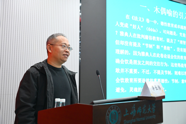 分论坛四上半部分5位学者围绕西方古典文本和对古典教育思想的解读展开探讨,主持人和评议人分别为陕西师范大学李明达教授和云南大学王果教授。浙江大学段奕如围绕《理想国》中的血气与诗教展开演进,探讨了血气特征、诗教作用、治疗灵魂疾病等,提出把握学习与诗教关系的思路。浙江大学陈芽芽围绕柏拉图《理想国》中“高贵的谎言”展开论述,涉及其来源、不同理解、在理想国中的提出及必要性、神话构成与深层含义等。评议教授认为把《理想国》中的血气梳理清楚,很有意义。但诗教的指向要具体清楚,不同视角所描述的不一样。理清学习线索、分开观察学习和诗教,再综合考察其关系。湖南师范大学梁怡芸围绕人机对话与师生对话展开,探讨人机对话的问题、影响及化解办法。评议教授对梁怡芸的论文修改提出建议:关注口述与文字交流方式的区别、需要理一下逻辑,区分师生、人机对话的区别,语言在人际和人机对话中的逻辑,以及人机对话好坏关联。浙江大学朱冰彦以“诗性与理性”为主题,基于对《法义》第二卷文本细读,围绕适用于立法者的争论展开,以雅典诗歌竞技乱象引出立法者在教化秩序中的地位。评议教授认为文章应聚焦主题,梳理章节关系与主线,每个章节之间的联系要贯穿主线关系,处理好对细节的把握,还应考虑《法义》与《理想国》的关系及不同层次的教育。湖南师范大学冉路伟围绕数字技术对教育的影响展开探讨,研究出发点是从古典教育视角,关注在爱智慧过程中如何成为好人,而数字技术使知识面临伦理等风险,影响人成长。评议人王果教授认为研究需明确知识基础问题,做好古典命题与当下问题对接的分辨和分配,思考教化秩序及人工智能的作用。