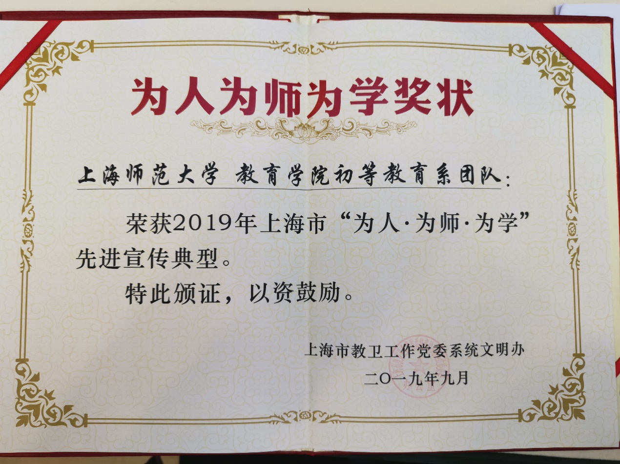 我院初等教育系团队是上海市级教学团队,系科为上海和全国小学教师培养作出突出贡献,是我国高学历小学教师培养的先行者和排头兵,是上海高素质小学教师培养的主力军和顶梁柱。系科党支部先后荣获“上海市教卫党委系统先进基层党组织”、“上海市教卫系统创先争优先进基层党支部等”,2016年系科荣获“上海巾帼文明岗”,2019年系科荣获“全国巾帼文明岗”。