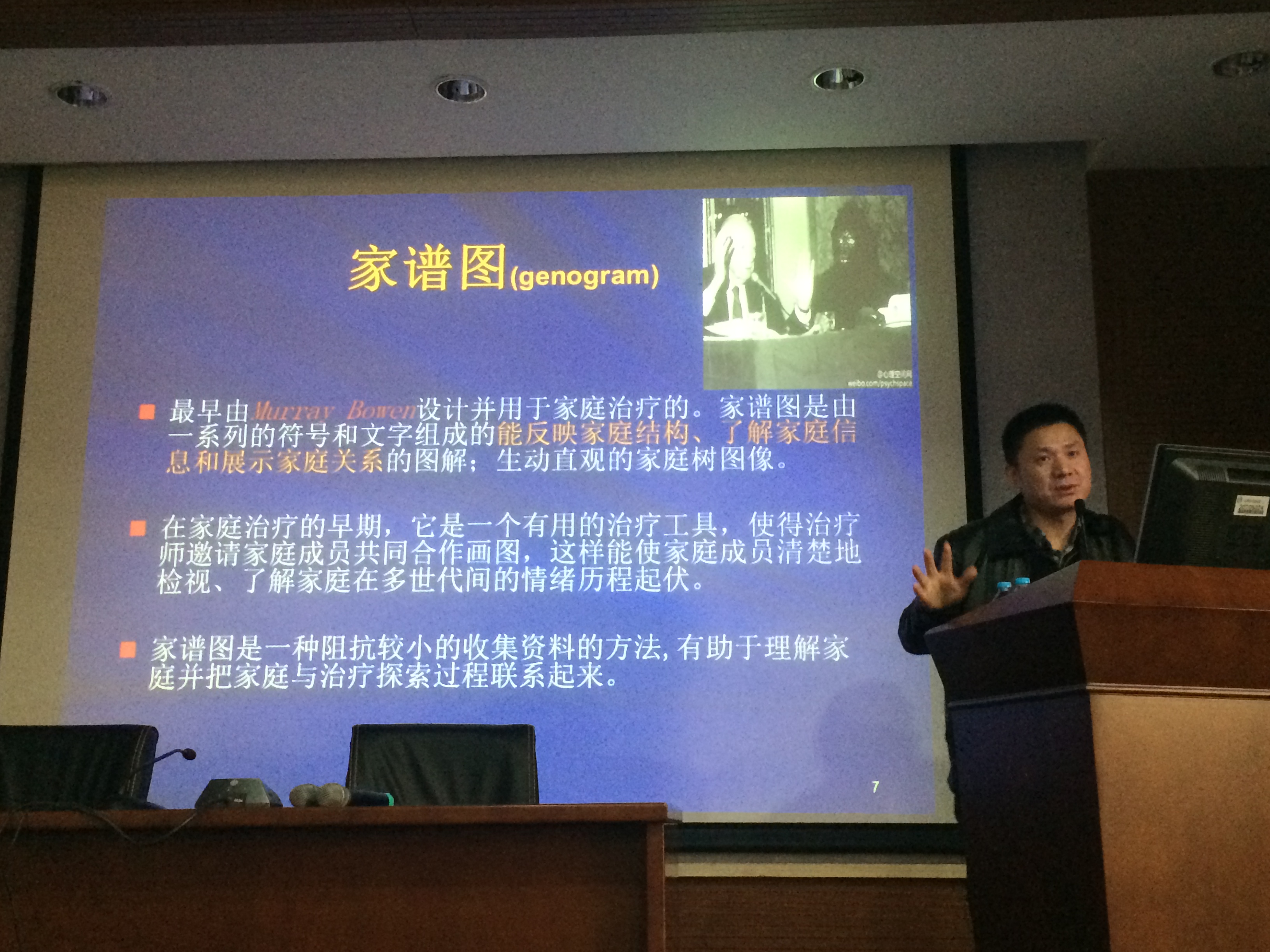 12月12日下午,在徐汇校区四教B座101报告厅,上海交通大学医学院附属精神卫生中心门诊部副主任万行军为我院师生作题为“家谱图叙说关系界限”的心理治疗领域的学术讲座。参加此次讲座的主要有心理系本科生、硕博研究生以及部分青年教师。讲座由心理系主任李丹教授主持。