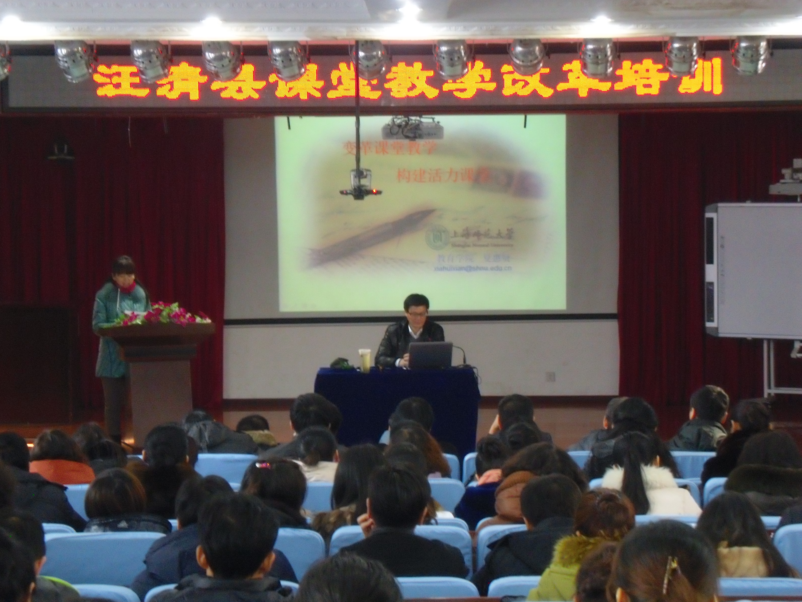 在汪清县期间,夏惠贤院长受到当地教育局领导、教师进修学院领导、各校校长和教师们的热烈欢迎,并应邀为汪清全县150多名中小学的校长和教导主任做了题为“变革课堂教学构建活力课堂”的专题报告。报告中,结合当下汪清县教学改革的实践,夏院长介绍了上海基础教育发展的现状及成功经验,向教师们提出了从“知识教育”到“从做中学”的教育理念转换的要求并向教师们提供了如“示范-模仿”、“指导-自学”等可以改变课堂的教学模式以及“长作业”等实用工具,为教师们提供了从成功经验、正确理念、工作模式到实用工具的一整套课堂教学改革行动支架。