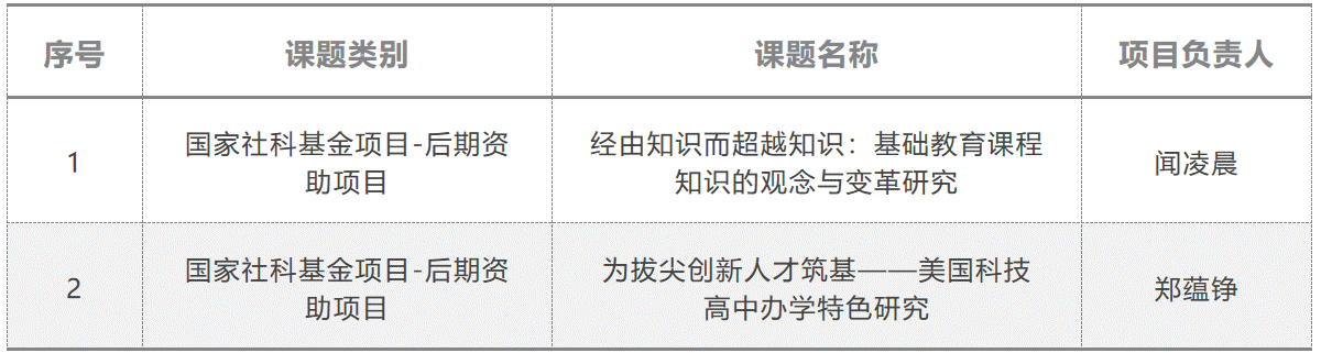 此次获批的两项课题聚焦教育领域重大理论与实践问题,积极回应国家在基础教育课程改革和拔尖创新人才培养方面的重大战略需求,具有鲜明的时代价值和现实意义。