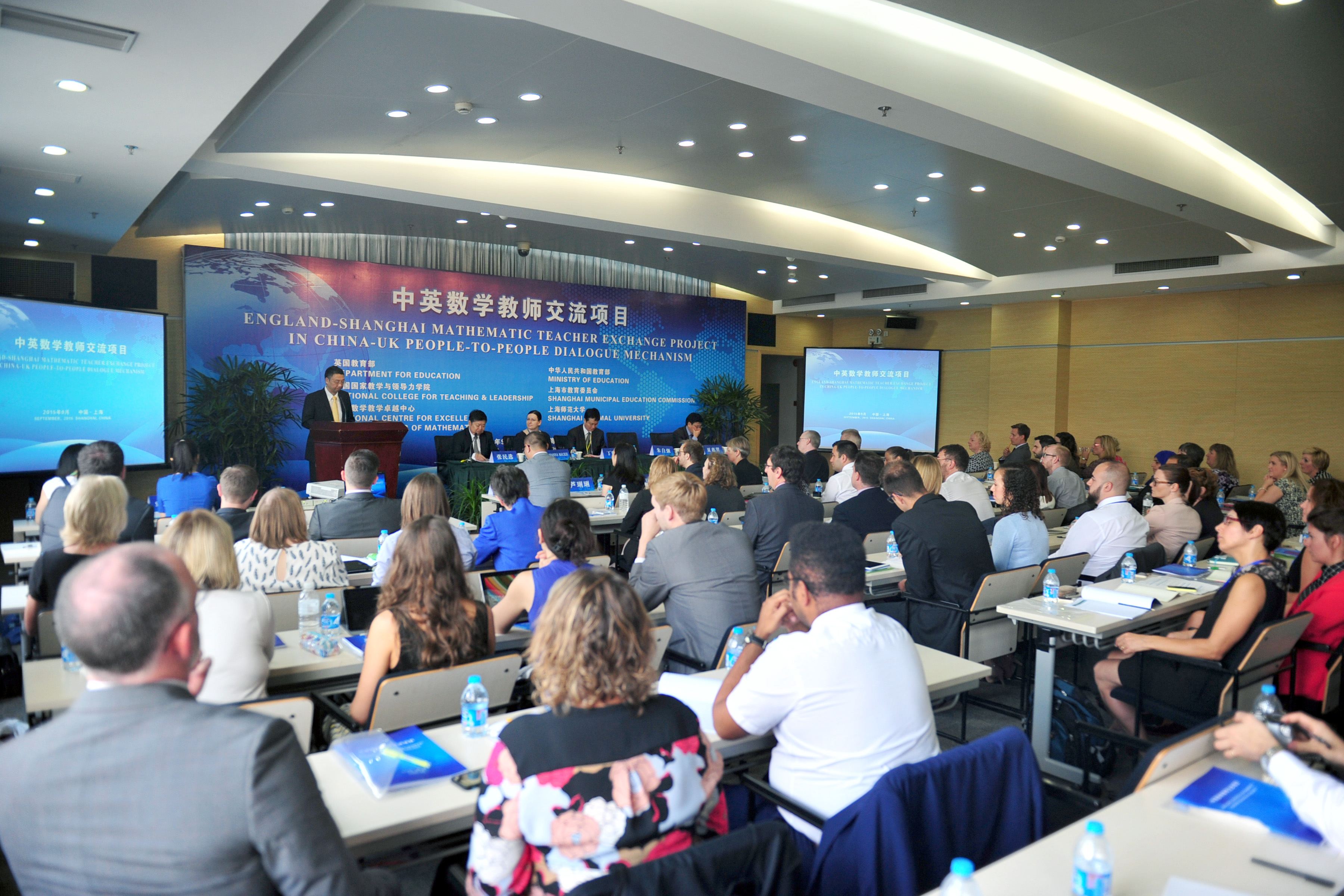 9月8日上午,由上海市教委与英国教育部主办、我校承办的中英数学教师交流项目正式启动第二轮的教师交流活动。来自英国34所基地学校的68名教师、来自上海39所学校的68名教师参加本项目。朱自强校长、上海市教委丁晓东副主任、英国教育部课程与标准司副司长Joanna Mackie参加了启动仪式并致欢迎辞,我校执行单位国际与比较教育研究院张民选院长主持了启动仪式。