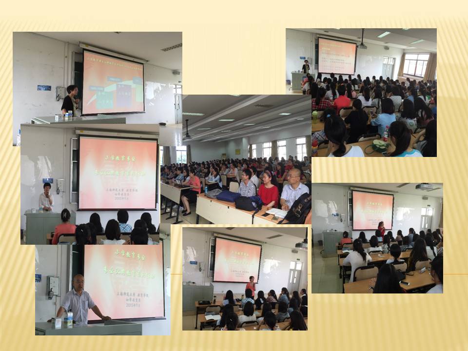 在专业认同教育的系列活动中,2014级和2013级学生作为学长,也为新生们展示了读书报告会。通过观摩学长们的学习汇报,使新生进一步对小学教育专业的学习特点和要求有了直观的感受,主持读书报告会的叶勤老师希望2015级学生从此开启读书之旅,度过充实而美好的四年本科生活。
