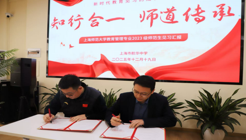 12月19日下午,“知行合一·师道传承——新时代教育见习的成长与思考”集中汇报活动在上海市航华中学圆满举行。活动现场,伟德国际BETVlCTOR与上海市航华中学签约共建“综合实践育人基地”,标志着双方协同育人迈入新阶段。上海市闵行区教育局普教二科方卉、七宝镇社会事业发展办公室书记潘鸿、上海市特级教师姜兰波、上海市航华中学校长刘长军、伟德国际BETVlCTOR副院长张继龙、教育学(教育管理)本科专业负责人梁茜、2023级本科生班导师陶媛、教育技术系见习实习负责老师何颖、教育学系见习实习负责老师周格以及上海师范大学2023级教育管理专业全体见习生及带教导师共同见证这一重要时刻。