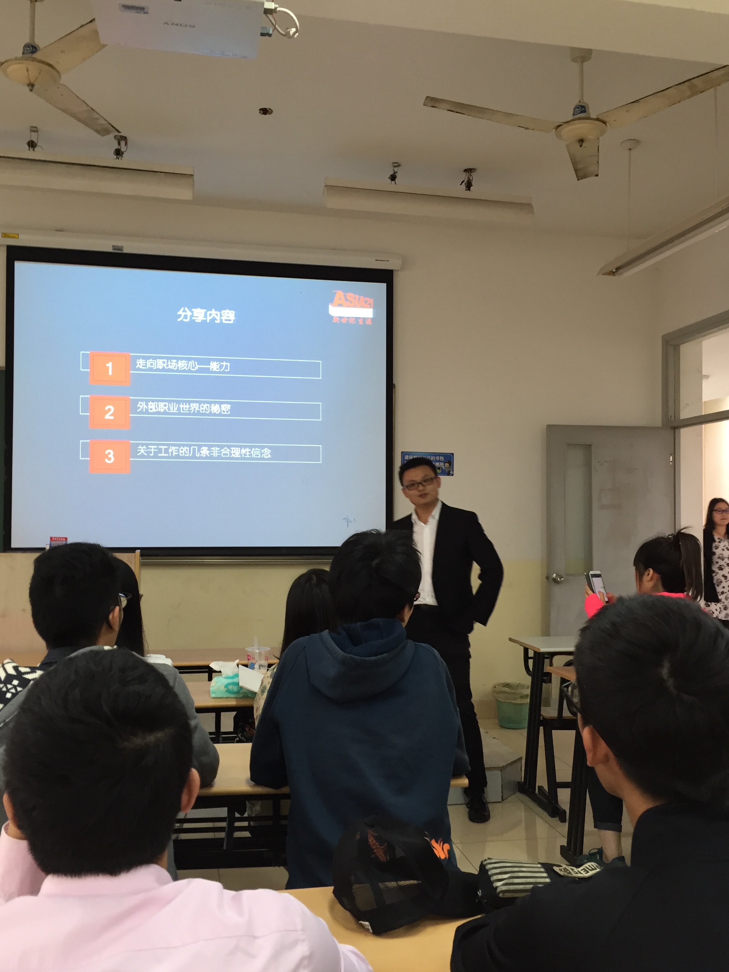 此外,周经理在讲座的第二部分中向在座同学谈及职场世界的秘密,通过实际的职业案例,帮助同学们更好地理解“行业、企业、职位”这三个职场概念,指导同学们如何从兴趣、能力、爱好等方面出发找到自己未来求职就业的最佳匹配模式。讲座最后,周经理带领大家开展能力探索游戏,他通过同学回忆9件最近让你感到有成就感的事,帮助大家精确定位自身能力与职业潜能。