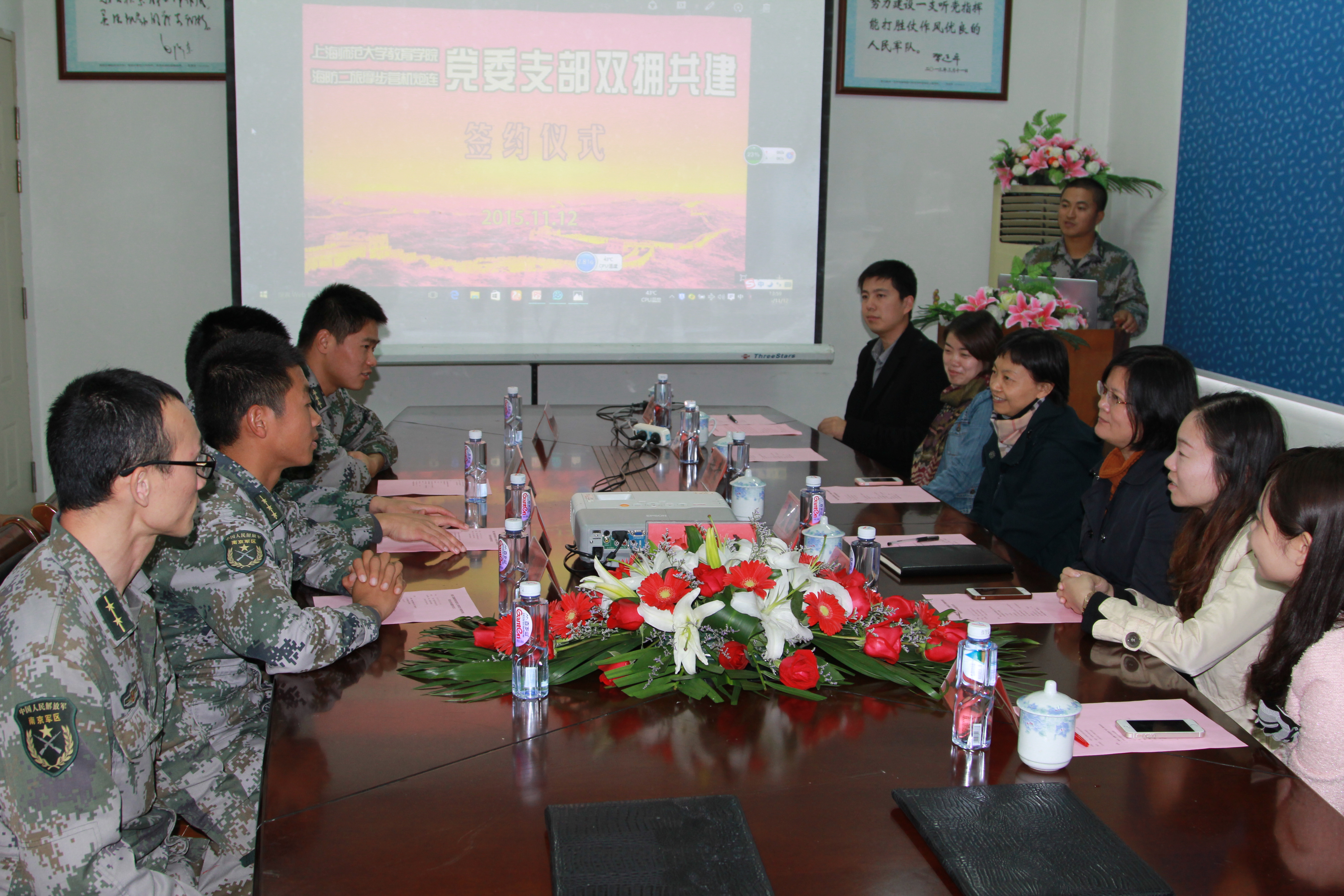 11月12日下午,由我院与海防二旅摩步营机炮连联合举办的军民合作共建协议签约仪式在海防二旅营连会议室举行。我院党委书记徐晓明老师,院党委副书记、副院长谢青老师,校团委副书记傅昕源老师、院团委书记金黎琼老师出席签约仪式;出席仪式的营连领导有摩步营政治教导员、党委书记李峰少校,机炮连连长、党委副书记董伟上尉,机炮连政治指导员、党支部书记胡志超上尉。