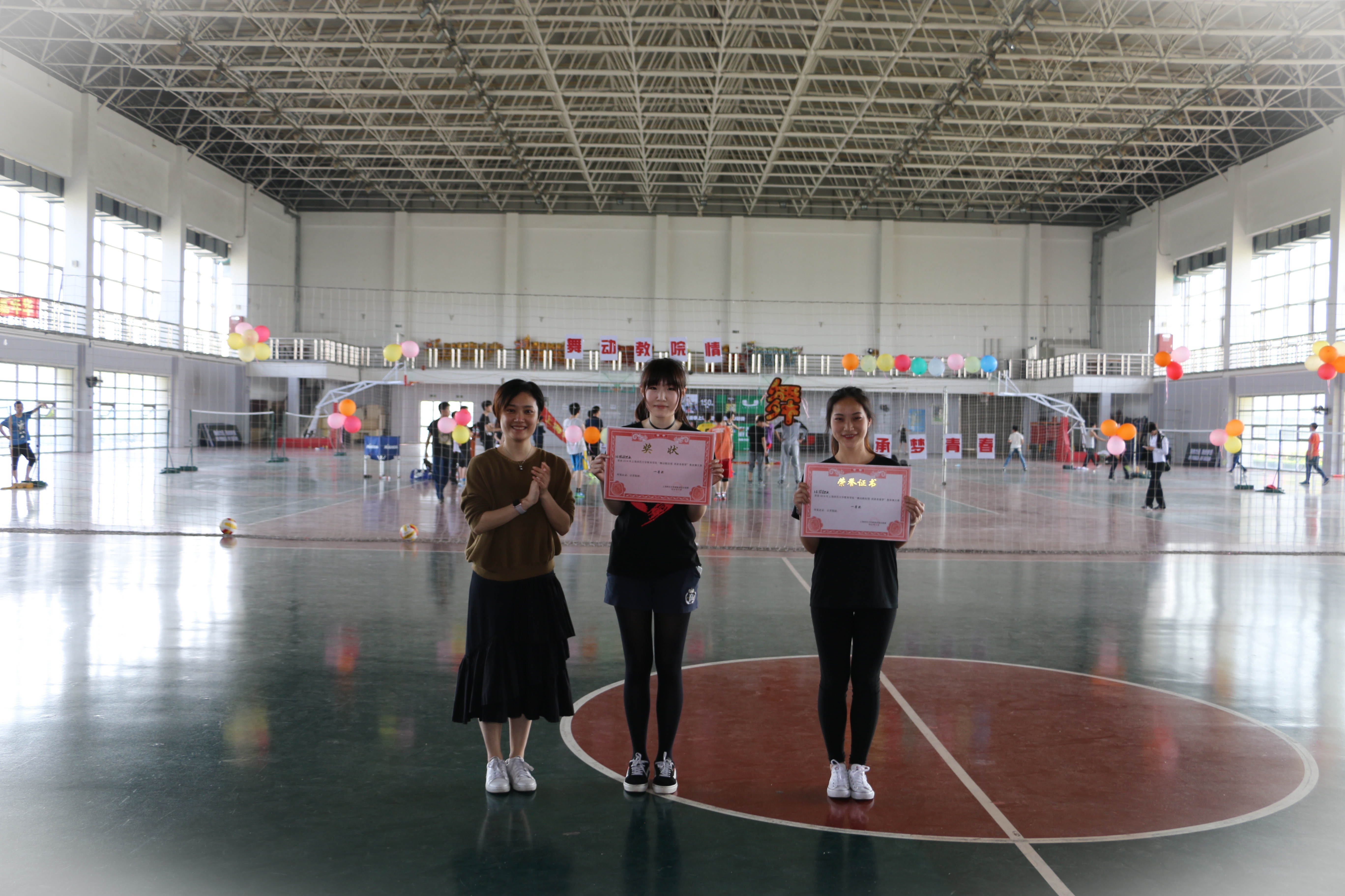 有一种青春的激情需要舞动,有一种集体的力量势不可挡。2016年5月4日下午1时,我院本科生集体舞大赛在奉贤校区南操体育馆顺利开展。本次大赛的评委老师有学院学前教育系专业老师吴珺老师、13级辅导员王凌霏老师、15级辅导员陆超老师以及DT街舞社资深社员宋洁璇。出席本次大赛的嘉宾有学院院办副主任张裕萍老师,学前教育系老师赵燕老师,学院奉贤校区学工办负责人、15级辅导员胡斌老师,学院分团委副书记、14级辅导员黄琼萃老师和14级辅导员许义老师。学院14级本科全体班级参加本次集体舞大赛。