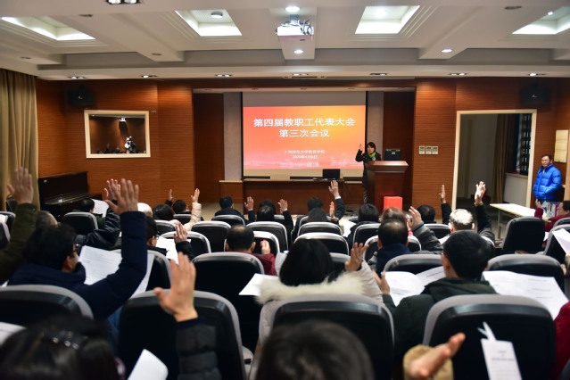 2020年1月8日(星期三)上午,伟德国际BETVlCTOR第四届教职工代表大会第三次会议在四教B101召开。会议由院工会主席贺雯主持,院教代会代表参加了此次会议。