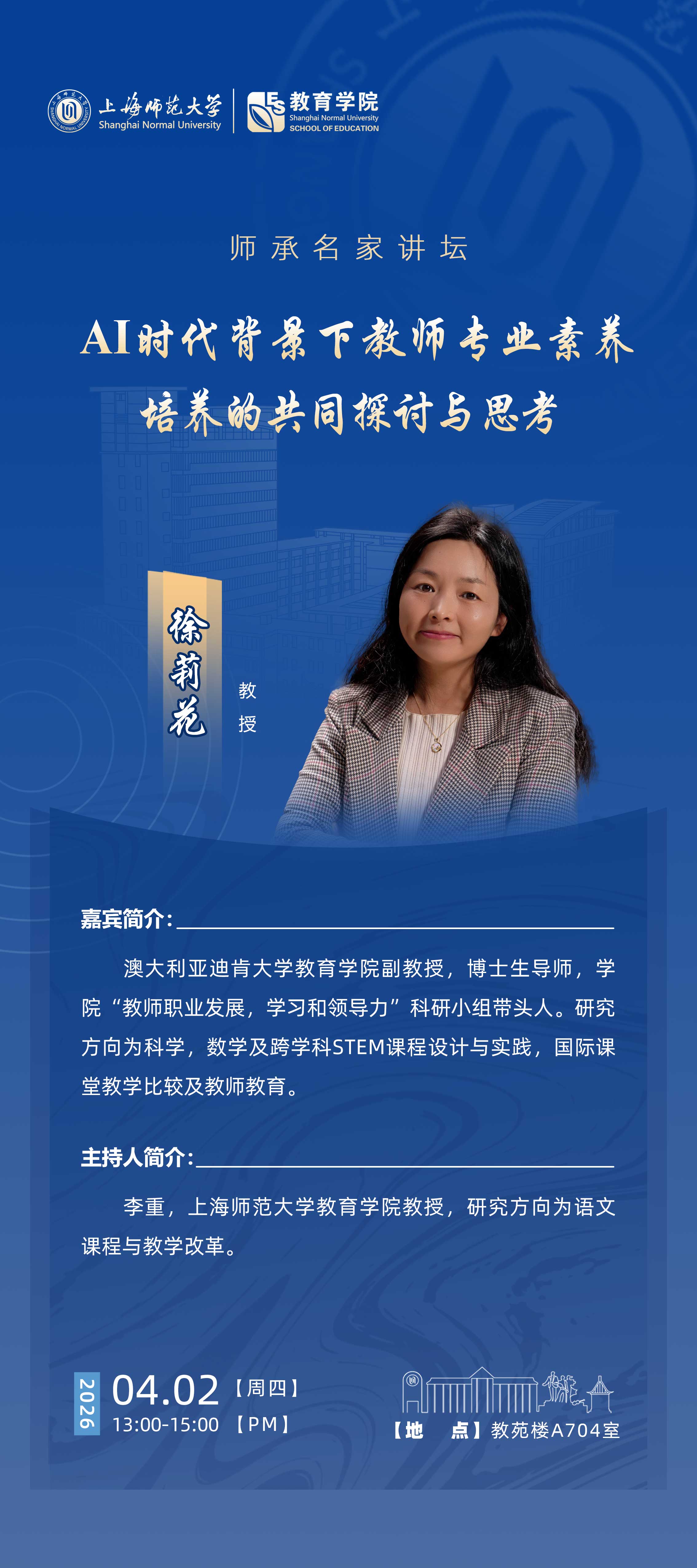 演讲人简介:徐莉花(Lihua Xu),澳大利亚迪肯大学教育学院副教授,博士生导师,学院“教师职业发展,学习,和领导力”科研小组带头人。研究方向为科学,数学及跨学科STEM课程设计与实践,国际课堂教学比较及教师教育。
