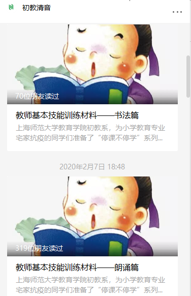 我院初等教育系的周丹卿老师利用自己从事儿童音乐教育的专业优势,开创“丹卿音乐云课堂”微信公众号,围绕探索身边的乐器、习惯养成、音乐渡人等途径为小朋友们送去一堂堂精彩纷呈的音乐课程。 为在疫情中困顿的小朋友们送去精神的慰藉,音乐的滋养,希望的力量。上师大新闻网等予以了重点报道和关注。