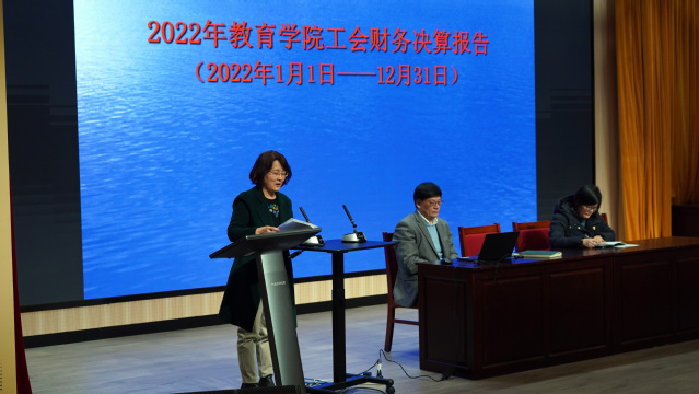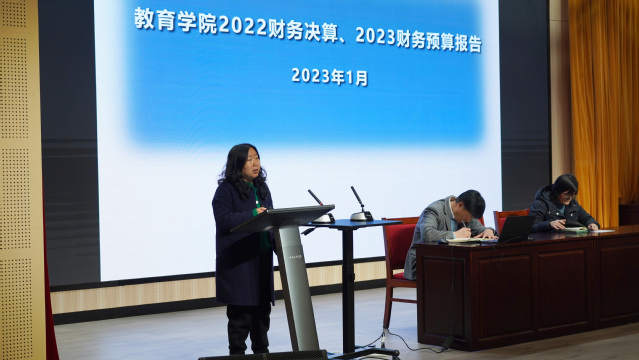 丁炜副院长作了《教育学院2022年度财务工作报告》,她向代表们汇报了学院2022年财务收支决算情况和2023年财务预算情况。