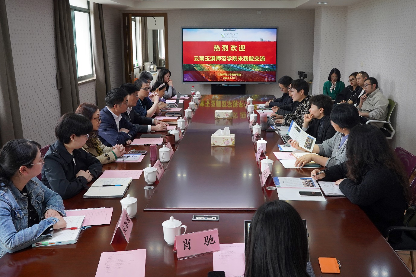 王晶晶院长对学院的热情招待表示感谢,对学院的建设情况给予高度评价。她首先介绍了玉溪师范学院发展历史、目标定位、学科建设等情况,随后对该校小学教育专业发展和专业认证进展做了详细介绍,并期望在课程、教材、师资、评估、基地建设等方面寻求经验。