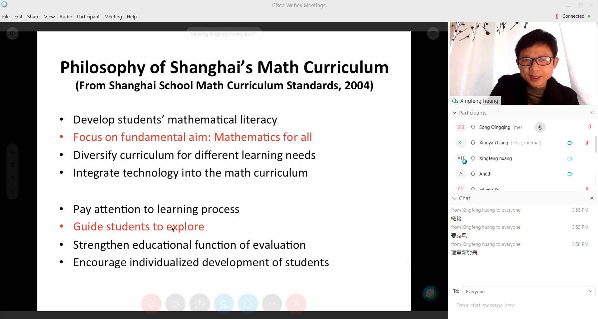 会议伊始,梁博士介绍了双方参会成员。随后,坦桑尼亚教育部和我中心互相介绍。坦桑尼亚团队简要介绍了坦桑尼亚的数学教师职前教育、在职培训和小学数学课程。我中心张民选教授介绍了上海在数学教育和教师培训方面的做法,黄兴丰副教授根据上海-英国数学教师交流项目,介绍了我中心在中英数学教师交流项目中所起的关键作用,以及中英数学教师交流项目对中英教师专业发展的重大影响,并就上海小学数学课程、数学教师的专业发展、以及小学数学课堂教学三个方面与坦桑尼亚和世界银行的与会者分享了上海的经验。闵行区初中数学教研员巢晖老师就上海区级层面对数学教师的培养做了简要的介绍。最后,三方对我中心如何通过网络为坦桑尼亚提供数学教师培训方面的技术援助提出了初步的想法,讨论了可能的合作方向和在线培训的工作计划。