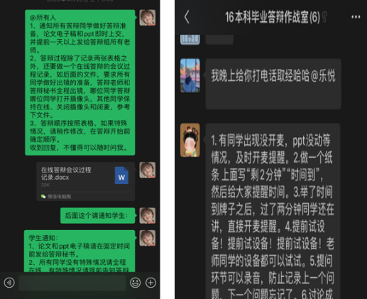 学前教育专业正式答辩前制定了线上答辩实施方案,明确线上答辩的安排、要求以及程序。每个答辩组配备1名答辩秘书,并召开会议对答辩秘书进行了培训。在答辩前将答辩分组、使用平台、答辩时间、答辩顺序通知到每位学生,要求答辩组师生提前熟悉平台,为答辩工作的顺利开展做好准备,确保答辩严格按照学校规章制度进行。