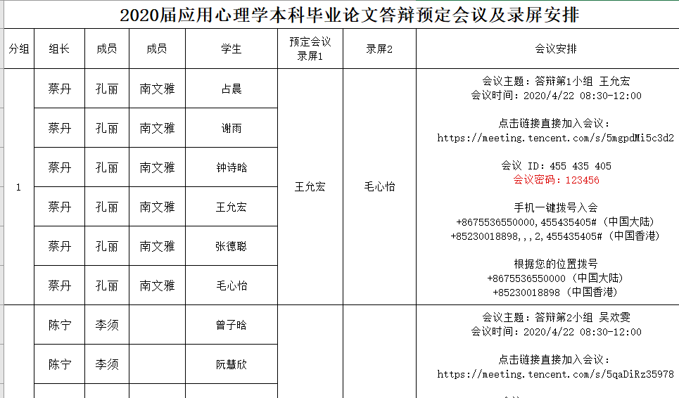 心理学系于4月22日通过腾讯会议网络平台,在线开展了本科毕业论文答辩工作,在答辩开始前分别给教师和学生下发了答辩说明,同时也安排了答辩会议预定及录屏人员的详细安排。