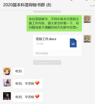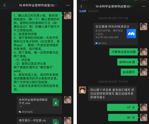 无论师生,进行在线论文答辩都是第一次尝试,为了确保在线答辩能顺利进行,教育技术系在答辩前进行了各方面的信息协调工作,参加答辩的全系教师召开了在线会议,就在线答辩中可能产生的问题进行了充分的讨论和协商;形成共识之后,专业负责人组织答辩秘书进行了全面的培训;答辩秘书负责和每个小组的答辩学生传达具体要求和收集相关材料,确保所有答辩的学生了解在线答辩的各项细致要求。在答辩过程中出现的问题,答辩秘书之间也能及时进行交流,确保后续不再出现类似的问题。