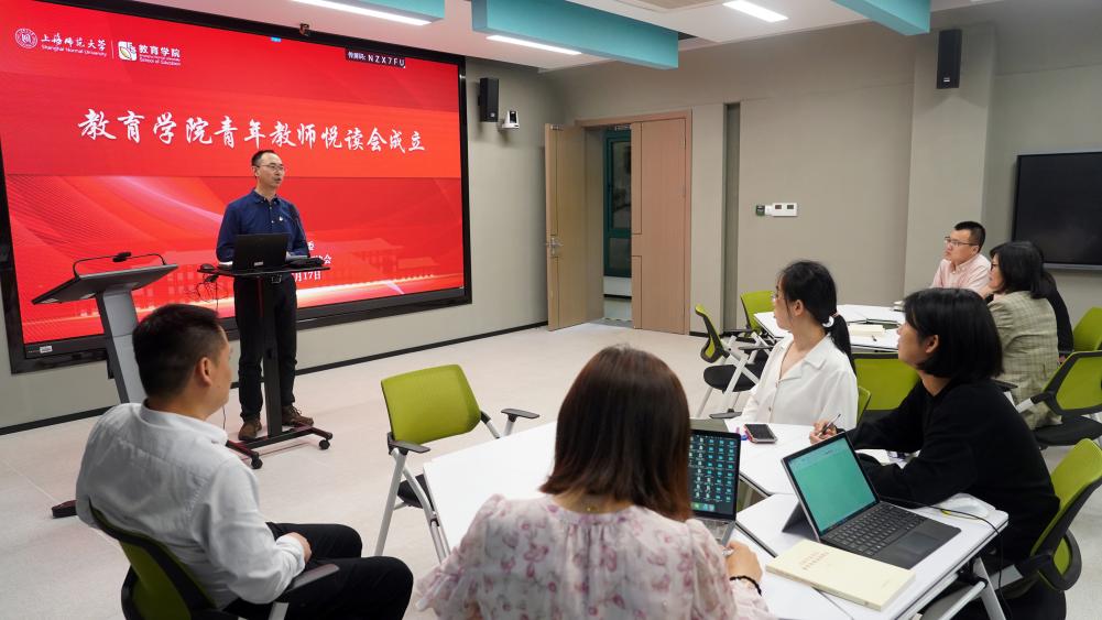 为深入学习贯彻习近平新时代中国特色社会主义思想,学深悟透习近平总书记关于教育的重要论述,教育学院党委、教育学院青年教师协会于2023年5月17日(周三)下午在教苑楼B101会议室举办青年教师悦读会成立暨首期读书分享会。邀请教育系孔令帅教授领读和分享“中国式教育现代化的行动指南——《习近平总书记教育重要论述讲义》读书体会”。教育学院党委书记徐晓明、副书记蔡丹和学院青年教师参加。分享会由教育学院青年教师协会副会长廖青副教授主持。蔡丹副书记代表学院党委,热烈祝贺青年教师悦读会成立暨首期读书分享会举办。
